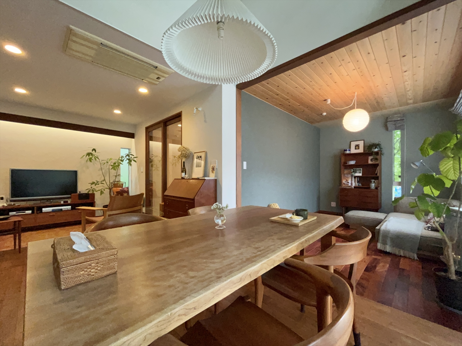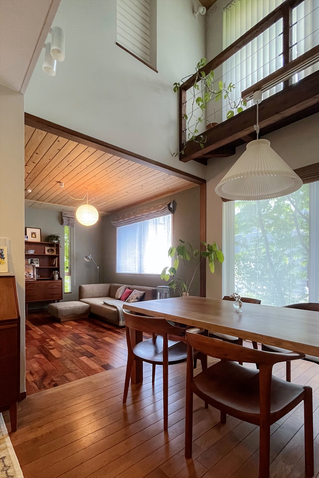 小上がりをなくしてダイニングとフラットに連続することで、空間に広がりも生まれ、心地の良い居場所が出来上がりました。