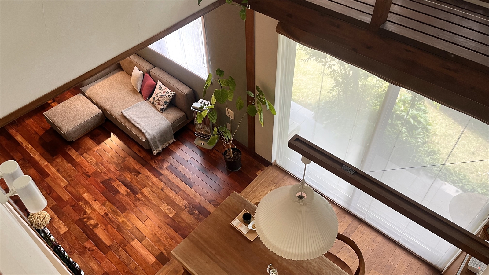 当初、茶室としても使用できるように炉を切って小上がりにした和室は、実際に生活してみるとあまり使用頻度が高くなかったので、窓際にソファーを置いて寛げる少しプライベート感のあるセカンドリビングに生まれ変わらせることになりました。